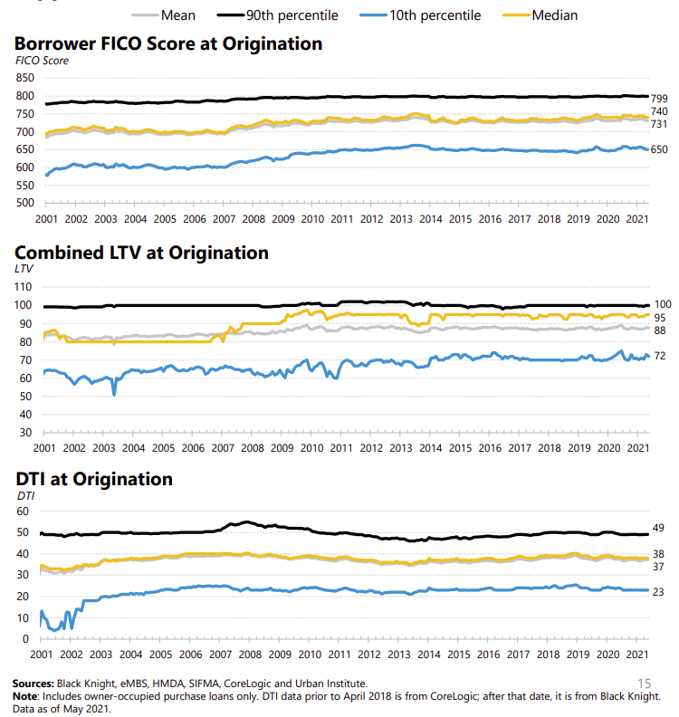 He included a chart from the Urban Institute showing the median LTV for new mortgage loan originations is 95% – and has been at that level for the last 12 years.