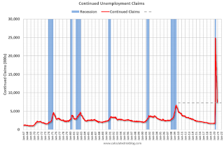 Continued claims decreased to 7,285,000 (SA) from 7,823,000 (SA) last week and will likely stay at a high level until the crisis abates.