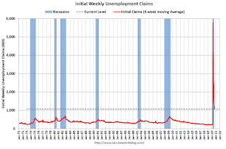 The following graph shows the 4-week moving average of weekly claims since 1971.