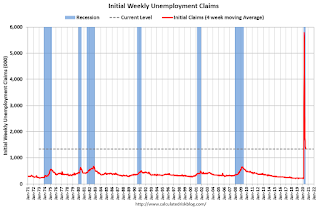 The following graph shows the 4-week moving average of weekly claims since 1971.