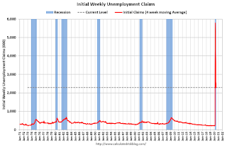 The following graph shows the 4-week moving average of weekly claims since 1971.
