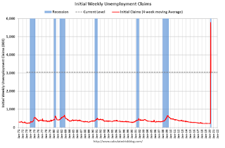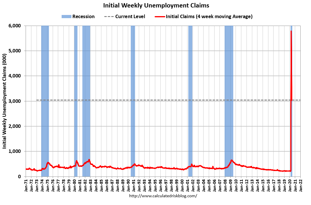 The following graph shows the 4-week moving average of weekly claims since 1971.