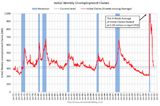 The dashed line on the graph is the current 4-week average. The four-week average of weekly unemployment claims decreased to 319,750.