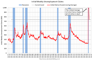 The following graph shows the 4-week moving average of weekly claims since 1971.