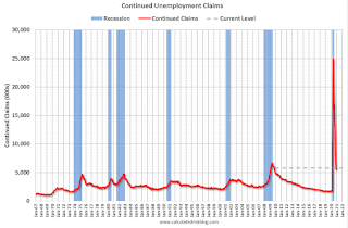 Note: There are an additional 8,555,763 receiving Pandemic Unemployment Assistance (PUA) that decreased from 8,869,502 the previous week (there are questions about these numbers). This is a special program for business owners, self-employed, independent contractors or gig workers not receiving other unemployment insurance.