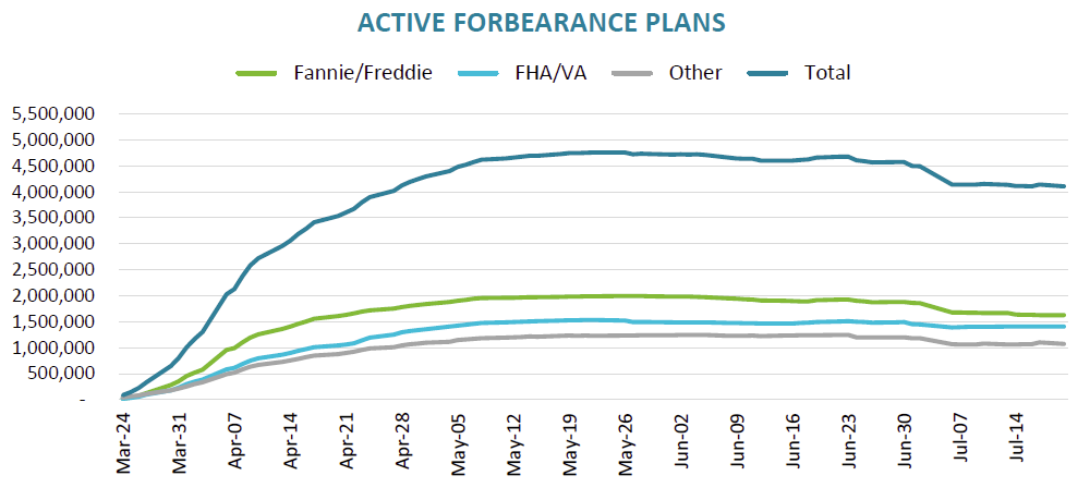 There was a surge in forbearance activity in late March and early April, but the number of mortgages in forbearance have declined slightly.